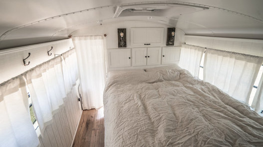 Ils ont donc décidé de transformer un véhicule en camping-car, et de voyager sereinement avec leur chien. Après plusieurs recherches, ils sont tombés d’accord sur un ancien bus scolaire, qu’ils ont intégralement rénové en camping-car de luxe. Ils ont investi environ 60 000 euros de travaux dans le bus qu’ils ont acheté environ 9 000 euros. Tout a été pensé à l’intérieur du bus, pour vivre confortablement tout en gardant certaines touches « rétro ».