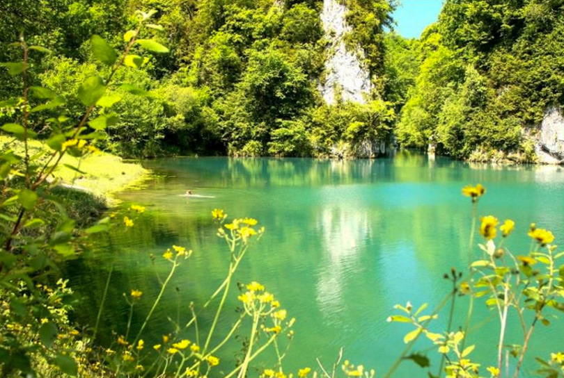 Le Gouffre de Saint-Sauveur, en Dordogne, propose une eau claire, entourée de forêts. Un endroit idéal pour savourer la vue saisissante des volcans éteints et des lacs de cratères, également à visiter en famille.