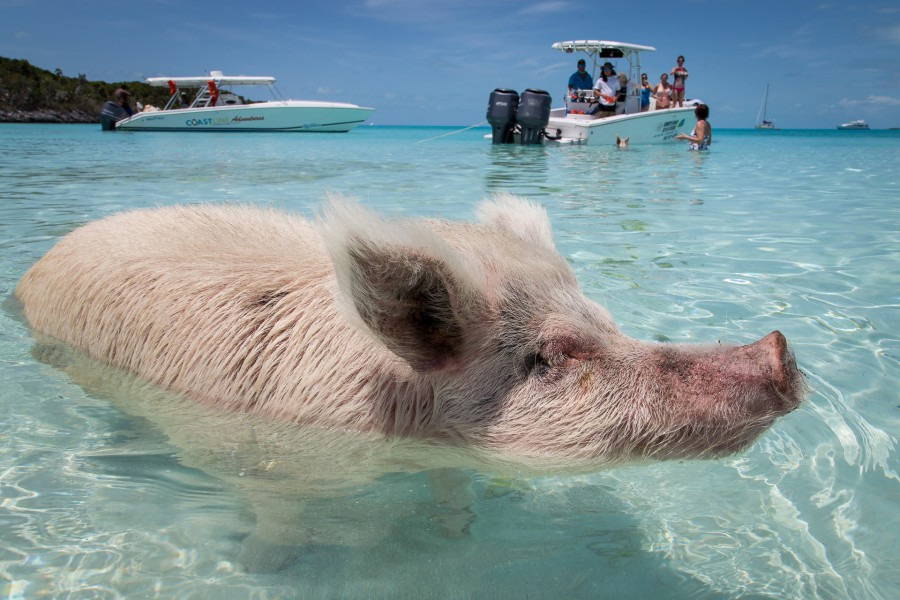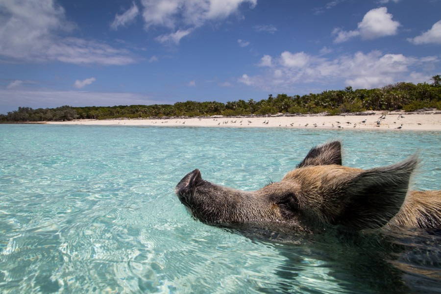Quand bien même, si nager avec les dauphins est devenu trop « commun », que nous reste-t-il dans ce cas ? Eh bien que diriez-vous d’une petite baignade avec des cochons dans les eaux azur des Bahamas ? Loin d’être une blague, c’est une aventure des plus sérieuses, bien qu’en apparence loufoque, on le concède volontiers.