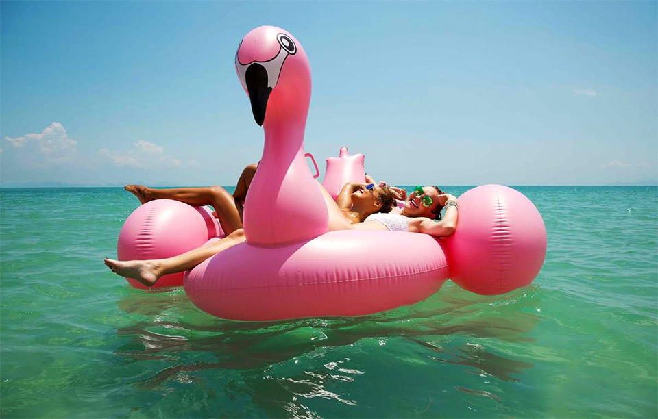 Les montures aquatiques du moment ont… un bec ! Et oui, la princesse et le cygne ne sera plus simplement un mythe, enjambez votre gracieux cygne pour flotter sur l’eau avec classe et volupté. Très élégante, la version flamant rose reprend un animal plus que tendance ces dernières années… Le flamant rose est décliné à toutes les sauces et tous les accessoires prennent sa forme ! Il correspond bien aux vacances exotiques que nous rêvons tous de passer.
