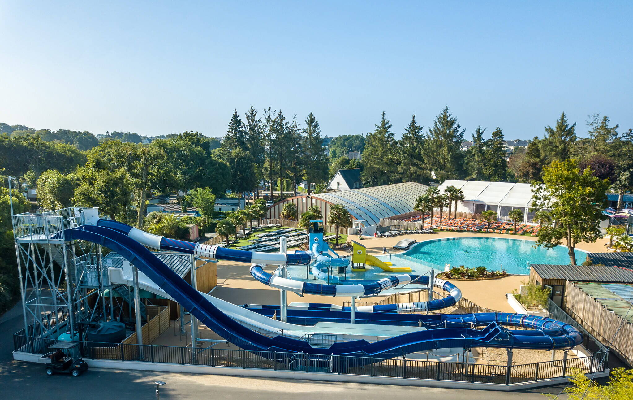 Au camping Port de Plaisance vous trouverez l’un des plus grands parcs aquatiques de Bretagne avec de nombreux espaces. La partie extérieure du parc aquatique compte un bassin lagunaire chauffé, des toboggans aquatiques sensationnels et une aire de jeux aqualudiques avec jets d'eau et mini-toboggans pour le plus grand plaisir des enfants. L’espace extérieur vous permet aussi de profiter du solarium avec ses transats et ses parasols qui sont idéales pour lire et se reposer tout en profitant du soleil. L’espace extérieur vous permet aussi de profiter du solarium avec ses transats et ses parasols qui sont idéales pour lire et se reposer tout en profitant du soleil.
