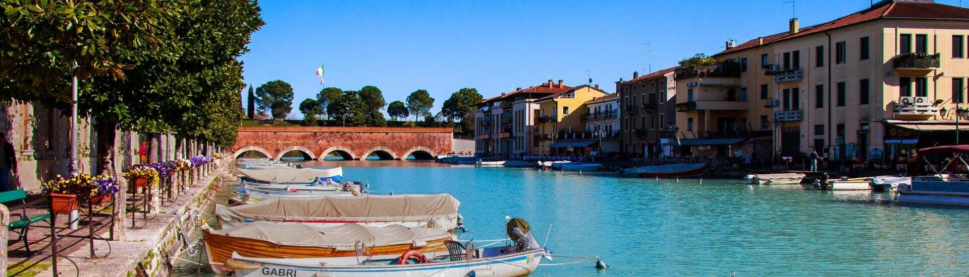 Peschiera del Garda est située sur les rives de la pointe sud du célèbre lac de Garde en Italie. C'est une charmante ville lacustre à l'atmosphère détendue où les visiteurs peuvent découvrir un patrimoine historique varié. La ville est un endroit merveilleux pour planifier des activités sur le lac et autour de celui-ci, ainsi qu'un excellent point de départ pour des excursions d'une journée vers la belle ville de Vérone ou des excursions à sensations fortes au parc à thème Gardaland, situé à proximité.